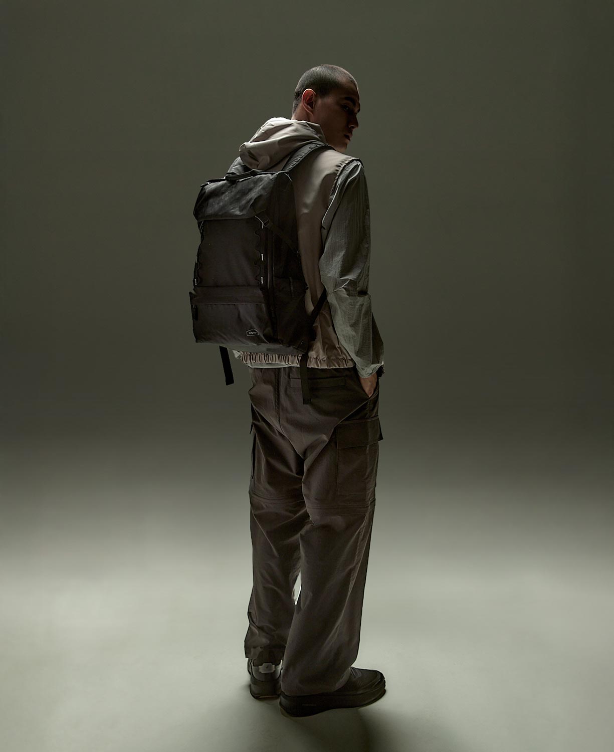 全開拉鍊設計提供主空間的完整取用,底部快取拉鍊方便迅速拿取內部物品。拉鍊頭可固定於底部織帶,減少誤觸開啟的可能。內部分層設計滿足多樣收納需求,正面設有蓋片口袋與防盜掛繩口袋;內部包含上方拉鍊口袋、網布拉鍊口袋及文件插袋;側邊的彈性束口袋則適用於各種尺寸水壺;背面的隱藏式防盜口袋,專為護照和貴重物品打造。主隔層配備防撞泡棉,提供筆電周全的保護。而行李插帶設計讓背包輕鬆固定於行李箱拉桿上。