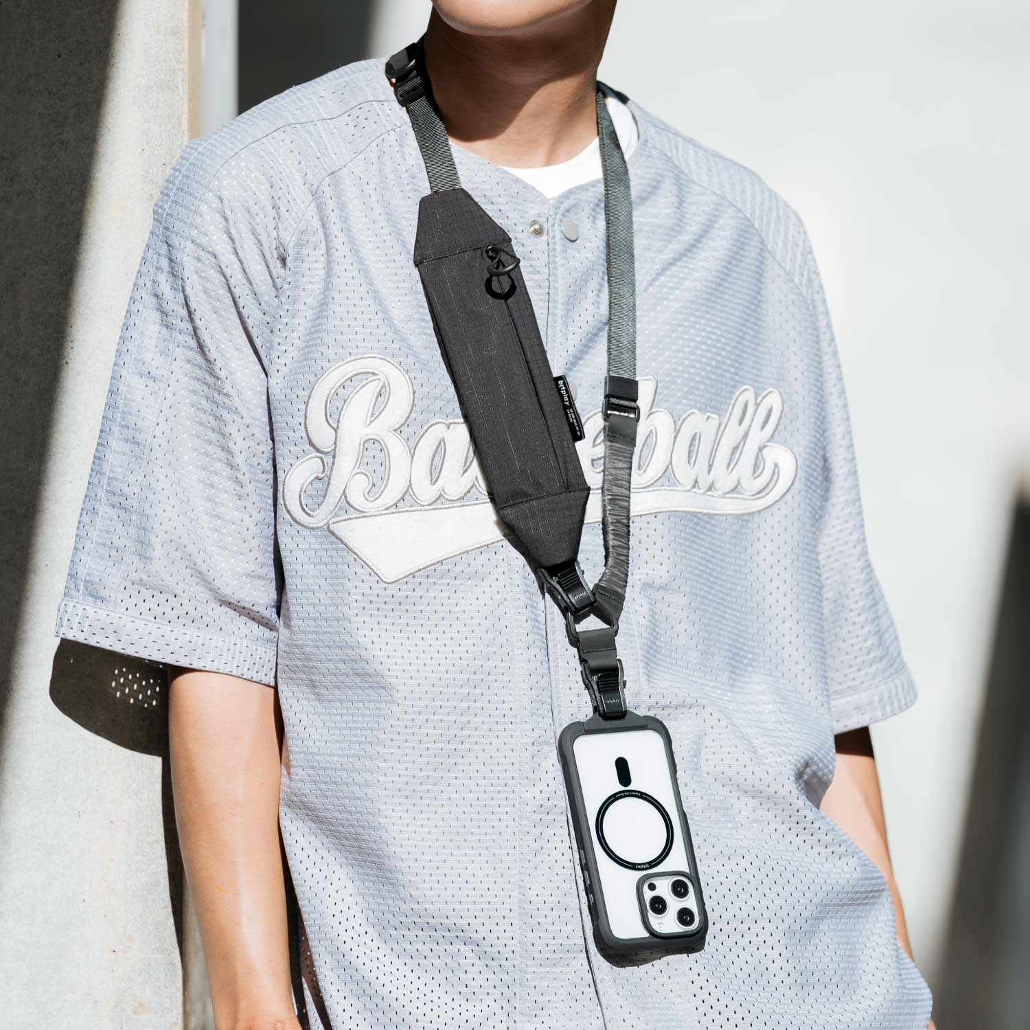 bitplay 斜背小包掛繩以小包結合掛繩的設計,為都市日常帶來快速便利的輕裝出門體驗,冷調中性的風格為穿搭注入俐落感與趣味感。整體採用異材質拼接設計,包含抗撕裂尼龍織帶、彈性皺摺細節與快拆配件扣,展現質感與機能並存的風格。掛繩可加裝超輕量可拆式背帶小包,方便短暫外出或外拍使用,並配有抗撕裂面料、卡片與記憶卡插槽及鑰匙扣,日常小物收納更簡單。磁吸連動的快拆彈性扣與 bitplay 獨創瞬扣夾設計,提供直覺且安全的拆裝體驗,並能快速調整背帶長度,滿足單肩、斜背或頸掛等不同使用方式。多用途機能讓它能成為手機背帶或包袋背帶,隨附的 bitplay 通用墊片兼容絕大多數 iPhone 與 Android 手機殼,輕裝出門或日常通勤都能自由切換。
