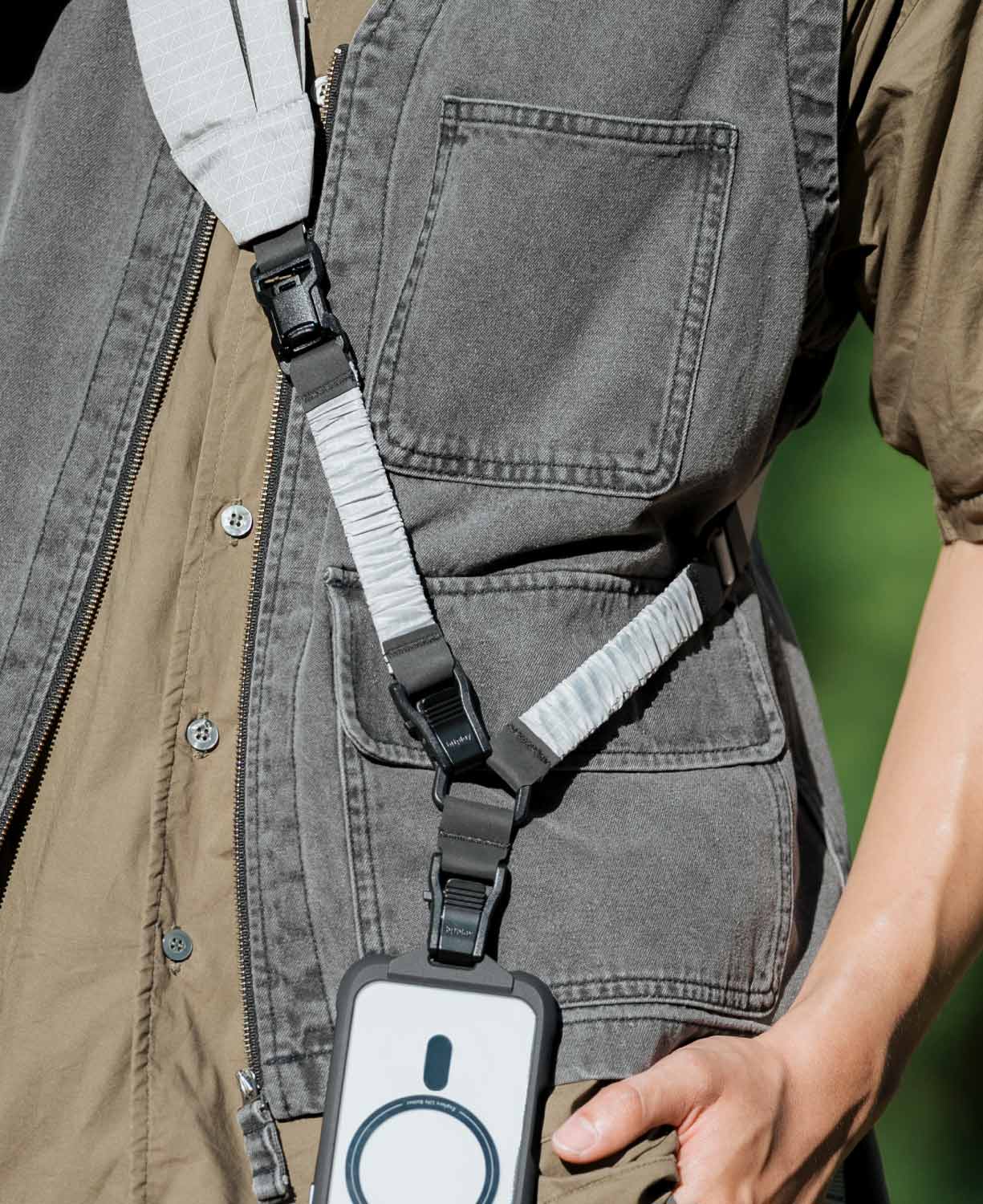 bitplay 斜背小包掛繩以小包結合掛繩的設計,為都市日常帶來快速便利的輕裝出門體驗,冷調中性的風格為穿搭注入俐落感與趣味感。整體採用異材質拼接設計,包含抗撕裂尼龍面料、彈性皺摺細節與快拆配件扣,展現質感與機能並存的風格。掛繩可加裝超輕量可拆式背帶小包,方便短暫外出或外拍使用,並配有抗撕裂面料、卡片與記憶卡插槽及鑰匙扣,日常小物收納更簡單。磁吸連動的快拆彈性扣與 bitplay 獨創瞬扣夾設計,提供直覺且安全的拆裝體驗,並能快速調整背帶長度,滿足單肩、斜背或頸掛等不同使用方式。多用途機能讓它能成為手機背帶或包袋背帶,隨附的 bitplay 通用墊片兼容絕大多數 iPhone 與 Android 手機殼,輕裝出門或日常通勤都能自由切換。