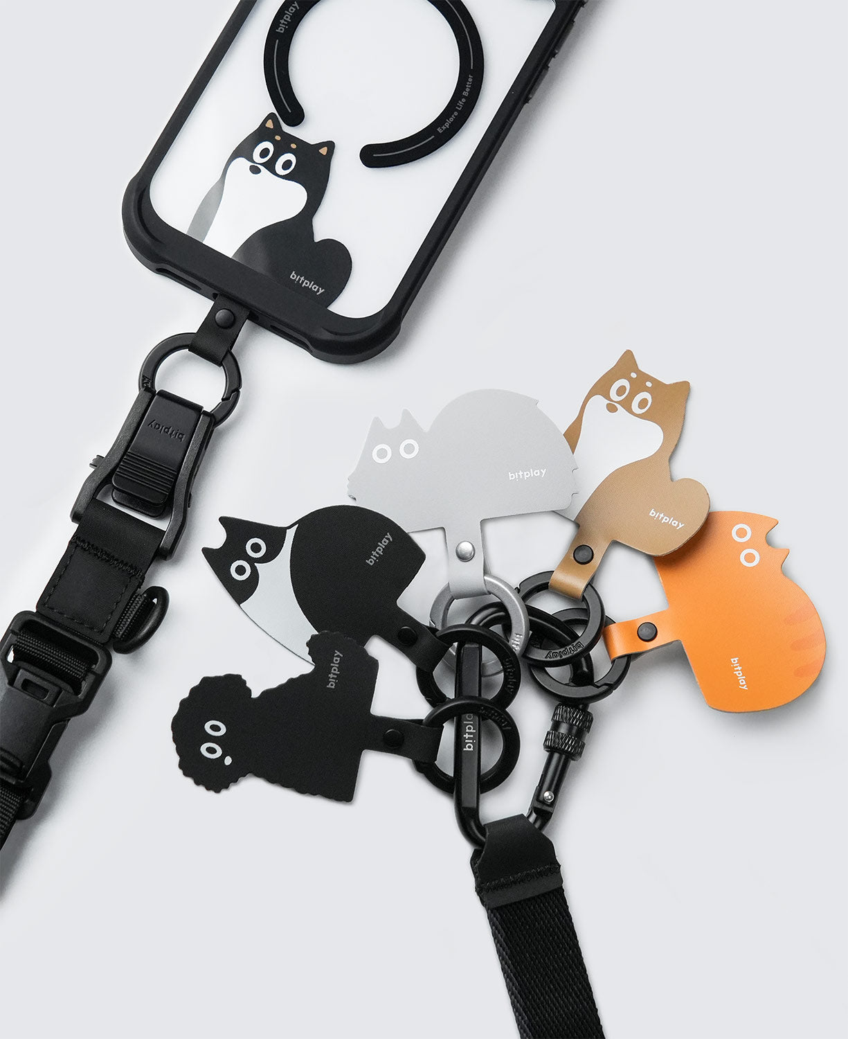 bitplay 造型轉接墊片可直接置入於背蓋封閉式手機殼內,穩固連接手機與掛繩或各式配件,讓日常攜帶更便利。這次特別推出六款療癒小夥伴:貴賓皮皮、赤柴豆豆、黑柴炭炭、賓士嚕嚕、橘貓吐司,緬因球球,讓手機掛上不只實用還超可愛!墊片本體採 420D 尼龍布複合雙面加厚 TPU 膠層製成,僅 0.6 毫米厚度,不影響充電孔使用,輕薄又耐用;搭配高強度可拆卸訂製扣環,可承受日常適度拉力,讓掛繩與配件連結安心可靠,陪你開心出門每一天。